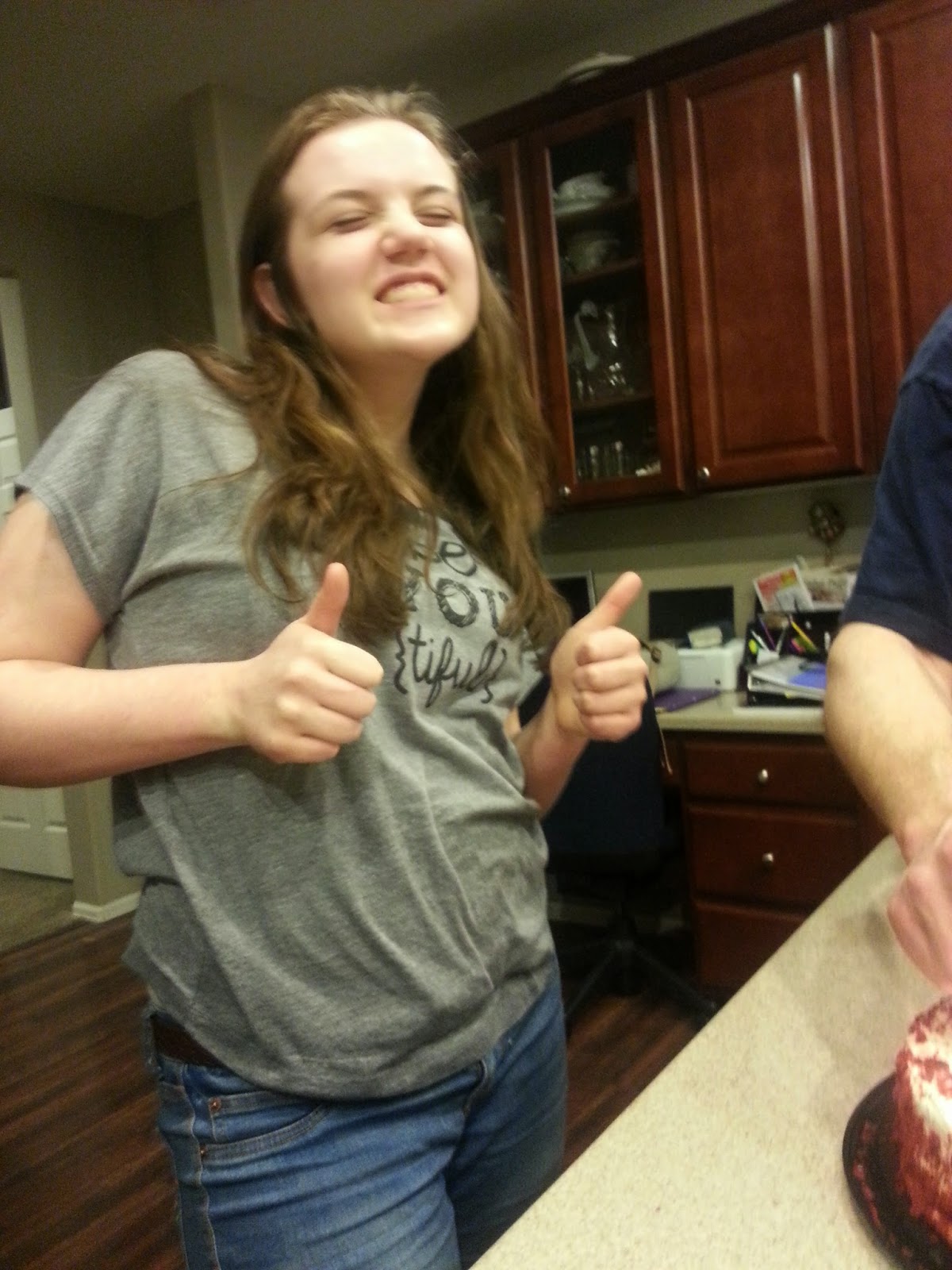 On Kara's 17th Birthday she had a had a fun day of school. Matt made her an Omelet for breakfast, one of her favorite things to eat. On the night of her birthday she also had an improv show that she was in. So we took her out for an early dinner and then she had to go to practice before her show. Spencer and Colton went with Matt and I to her show. Here is a picture from after her show with her brothers.